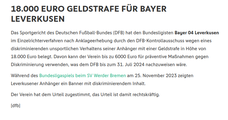 Da sich DFB und Leverkusen einig sind, wird das sicher die Bannerträger und ihre Sympathisanten ebenso überzeugen.