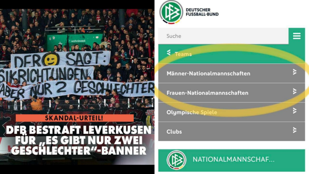 Der Servicehinweis einiger mitgereisten Leverkusener Fans am 25.11.2023 in Bremen, dass es nur zwei Geschlechter gibt, ist in der Biologie und bei den Nationalmannschaften weitestgehend bekannt.